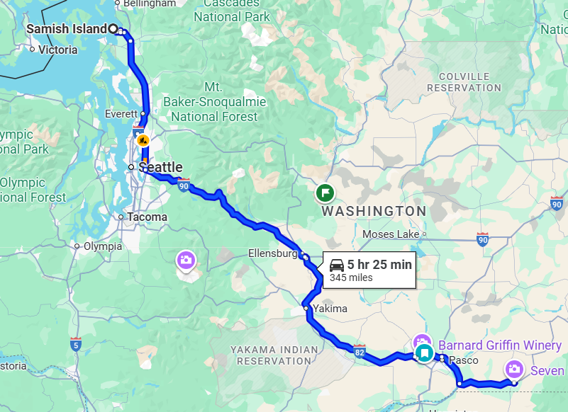 Washington State is the 18th largest in the country, 71,300 square miles, and I traversed it today from the northwest corner to the southeast corner.