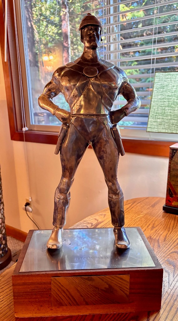 One event of significant importance was the transfer of Buc Trimmer to the next generation. Buc Trimmer was awarded to my father, Troy James Smith, at his retirement party. The finance department of North American Rockwell must have had some Hollywood contacts and a great sense of humor. Apollo 13–the flight that aborted its scheduled moon landing and made it back home–with all three astronauts alive–was made while my father was head of the finance department. Thus, he helped get Apollo off the ground–and back home. At his retirement party, he was presented with the Buc Trimmer Award.